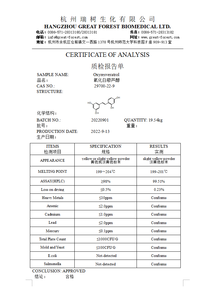 CAS No.:[29700-22-9] 外 观:淡黄色粉末 含 量:≥98%(HPLC) 熔 点: 199~204℃ 分子式: C14H12O4 分子量: 244.24